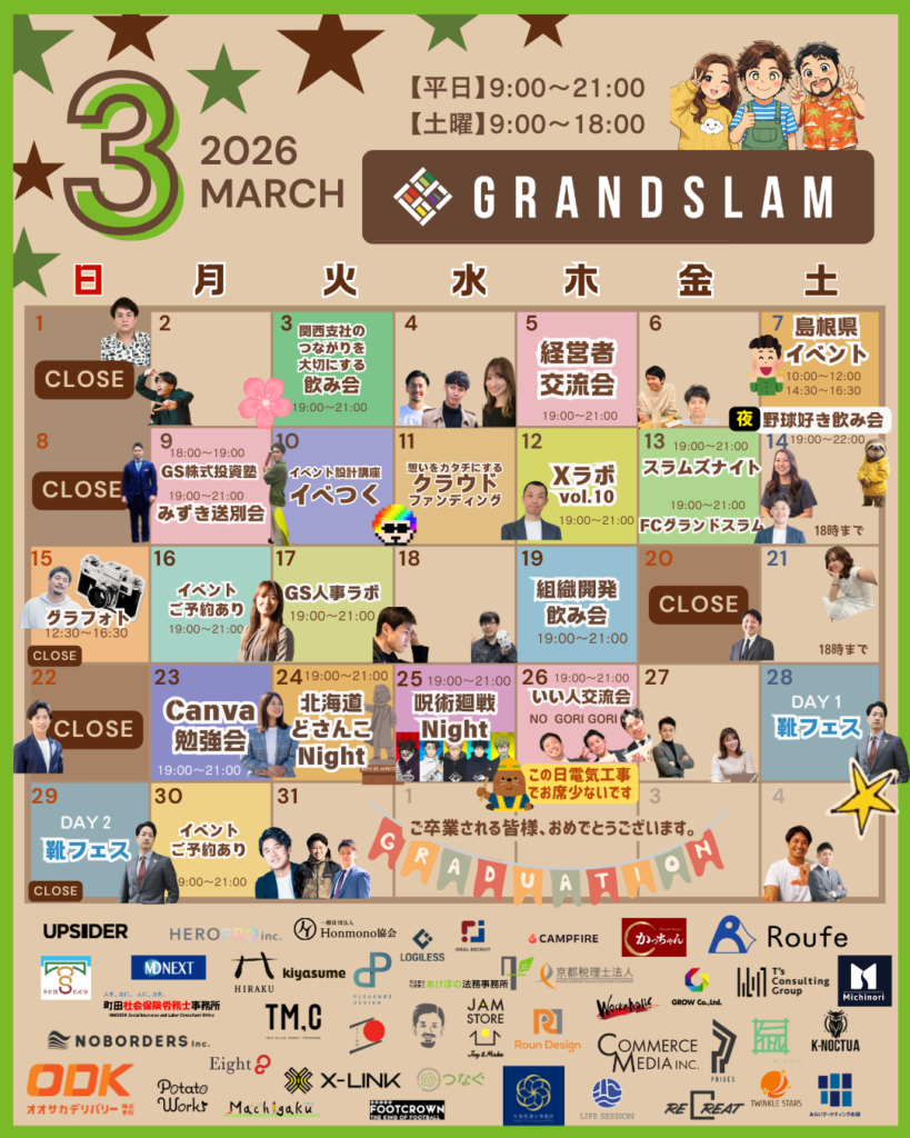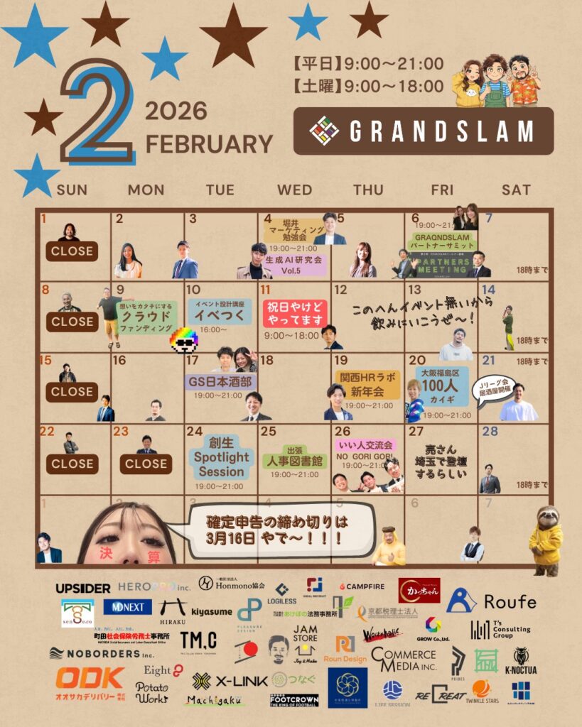 GRANDSLAMで開催されているイベント情報は以下からご覧ください。